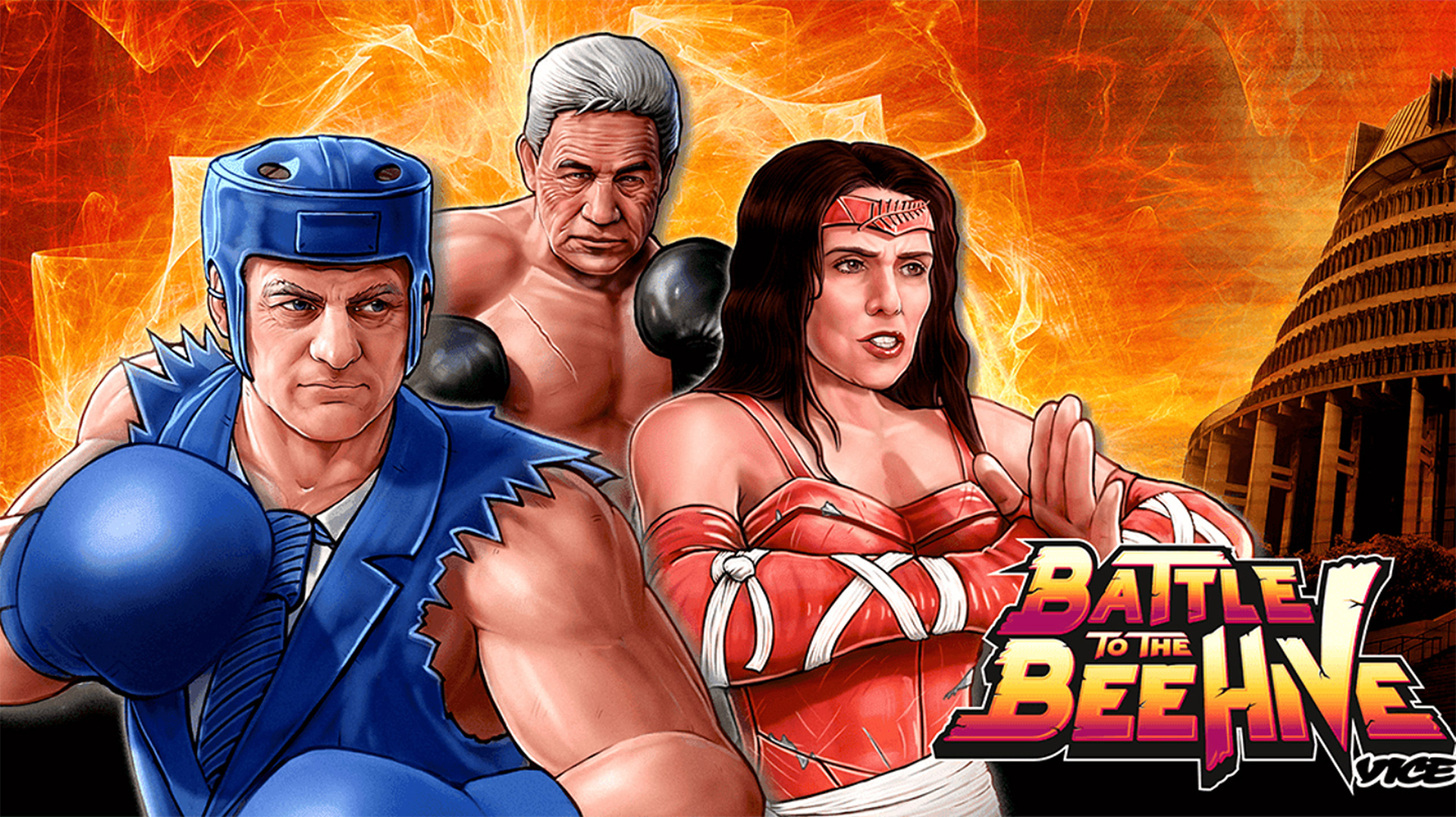 I was commissioned by Raphael Stone to create the visuals for a proof of concept pitch for a fighting game parody called “Battle To The Beehive”, for the New Zealand General Election. This included mock up animations and art demonstrating how the game would work.